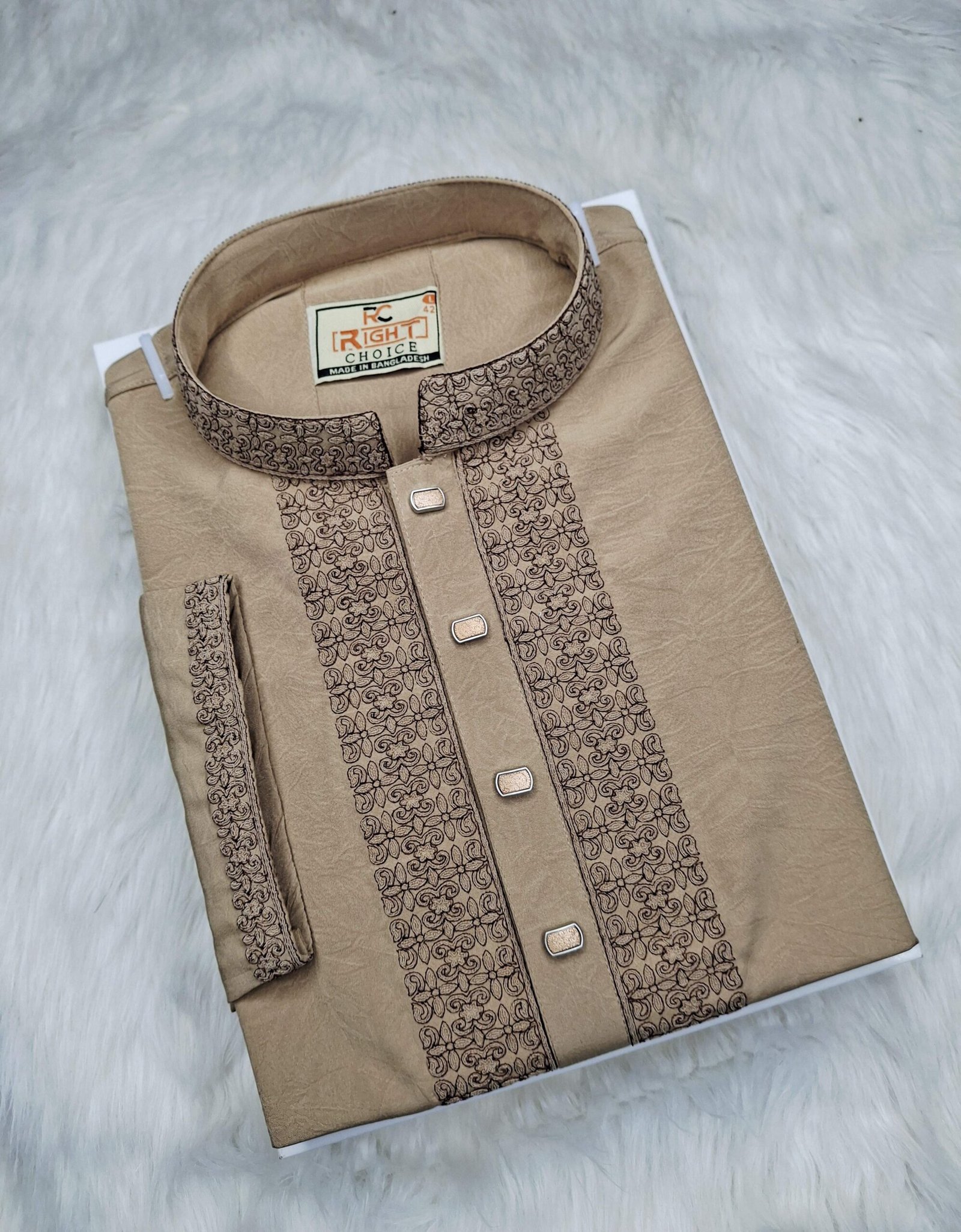 Stretch Embroidery Panjabi Flat Coth Design- Golden